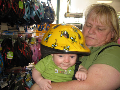 Fisher really wanted to go on the ride but he couldn't find a helmet that fit...maybe next time kid.
